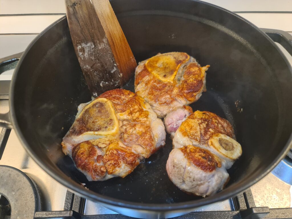 Je continue dans la série des plats cuisinés en sauce. Il ne va pas être difficile de voir que j’adore ça. Aujourd’hui, je fais un osso bucco à l’orange. La moëlle, le côté un peu gélatineux du jarret, la viande fondante, un régal.