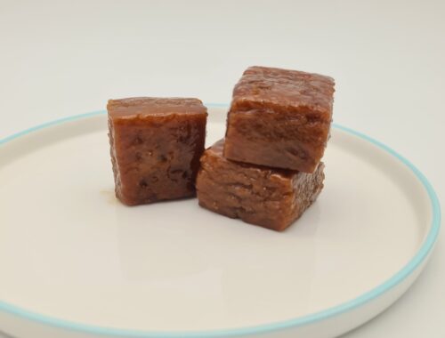 Je ne me souviens pas non plus, raffoler de la pâte de fruits, cela me rappelle les goûters lorsque je partais en colonie de vacances. J’avais faim alors, je les mangeais, mais ce n’était clairement pas ce que je préférais. Je me suis demandée si c’était toujours le cas. Oui, c’est bel et bien toujours le cas, je ne suis pas fan de la pâte de fruits. En revanche, cela ira compléter la collection de desserts pour les 13 desserts que nous faisons à Noël.