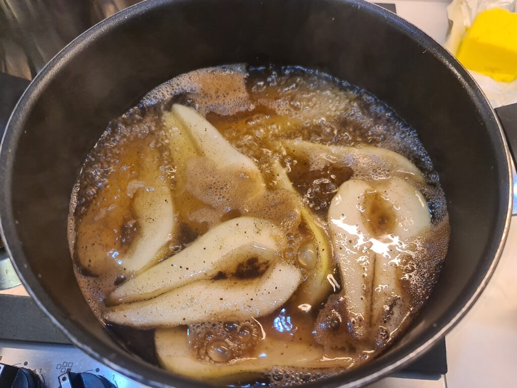 - Puis coupez le feu et laissez vos poires dans l’infusion le temps que vous fassiez le reste de la recette