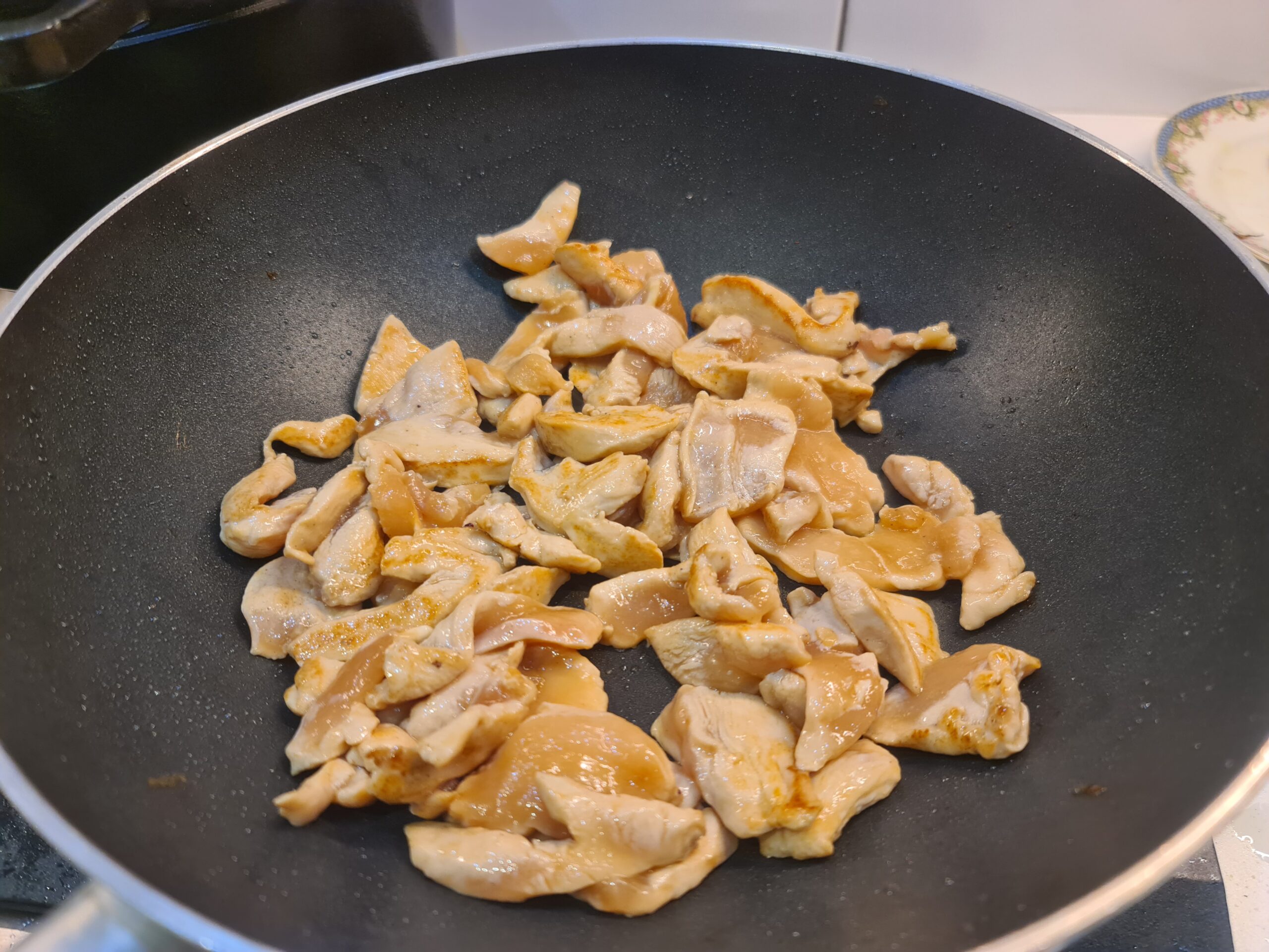 - La quantité de viande va vous paraître un peu faible, personnellement j’avais une barquette de blanc de poulet de 380 gr, c’était la bonne quantité pour nous quatre