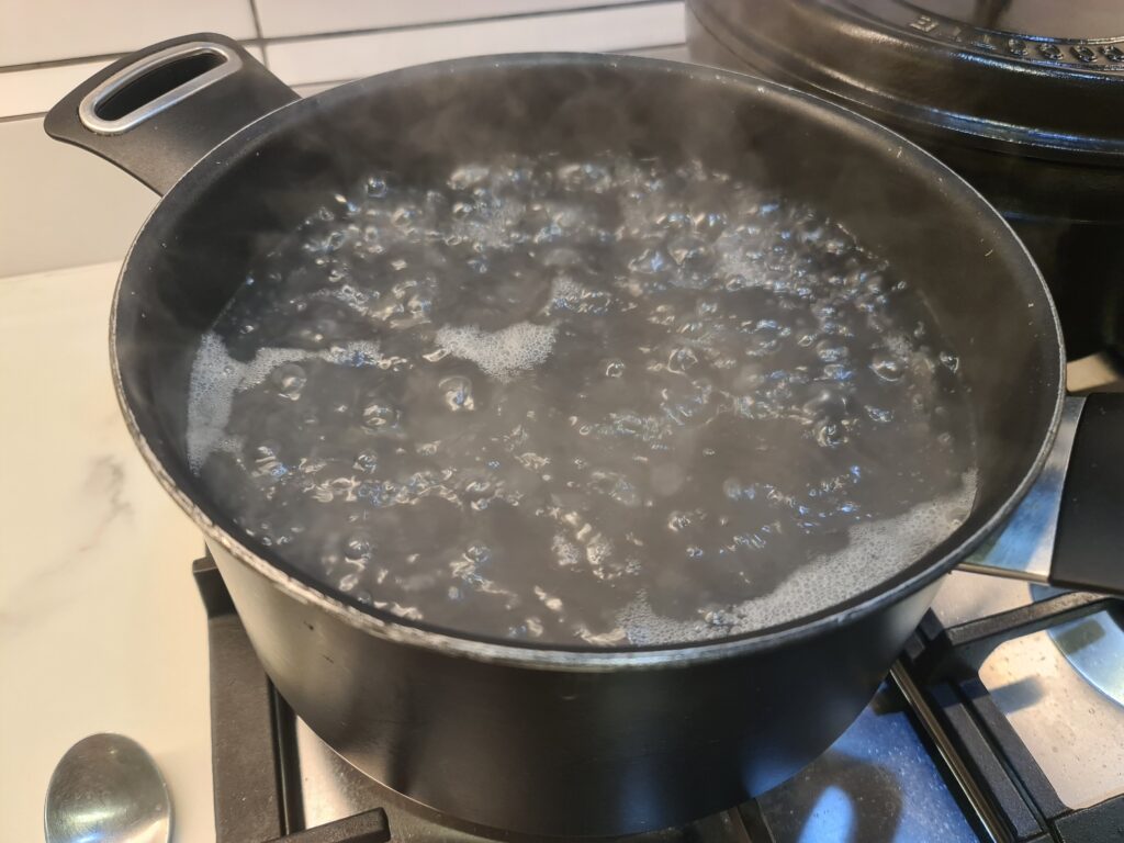 - 시금치를 삶기 위해 물을 끓여요