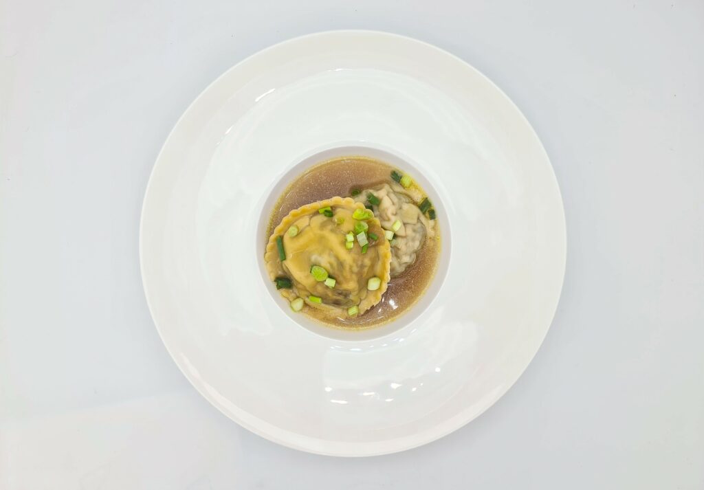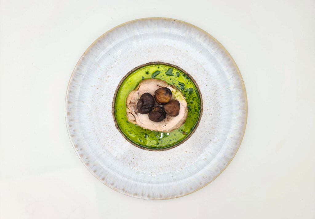 Pour les plats, nous avions une ballotine de dinde et des ravioles de potimarron, châtaigne dans son bouillon végétal.