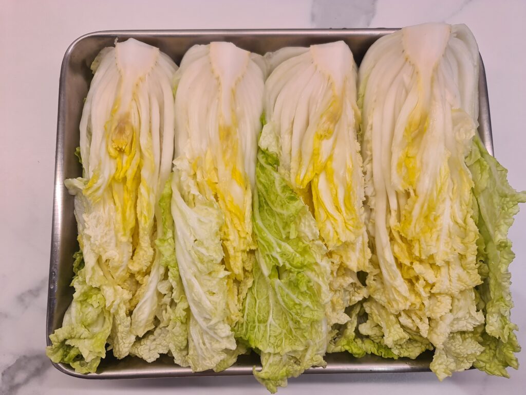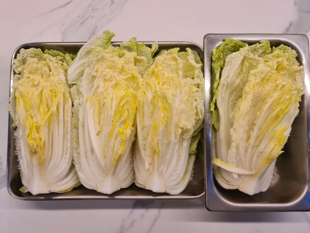 J’ai déjà une recette de kimchi sur mon blog, qui est une recette végane. Cette fois-ci je rajoute une recette de kimchi plus traditionnelle, avec de la sauce de poisson et de la sauce d’huître. Je pense que je vais aussi rajouter des crevettes salées la prochaine fois afin de rajouter plus de goût à la recette. En soi, la recette est très similaire à la précédente. En revanche, je mixerai plusieurs ingrédients ensemble, ce que je ne faisais pas dans la recette précédente.