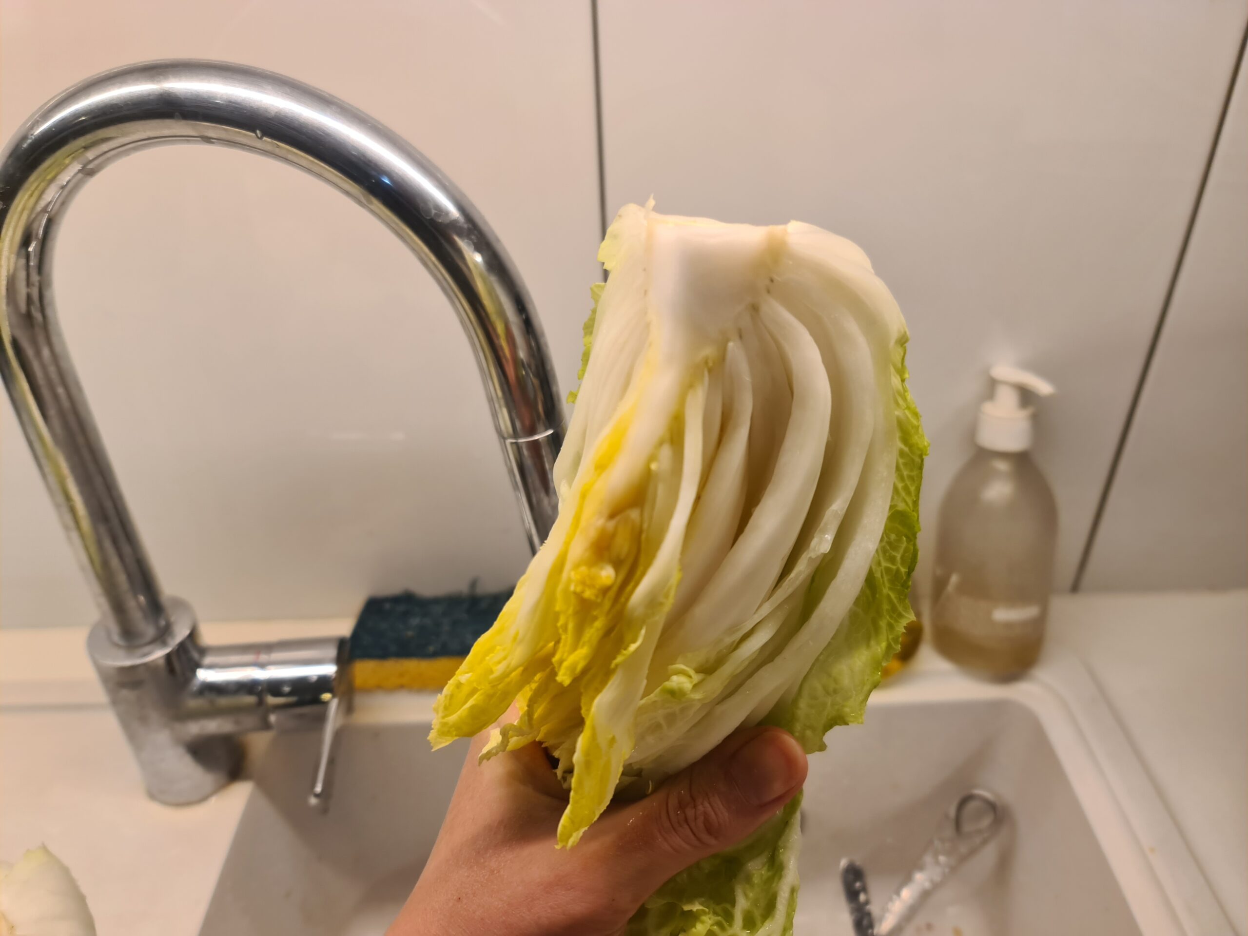 Une fois que vous avez un chou bien dégorgé, lavez-le pour retirer le maximum de sel, rincez-le plusieurs fois.