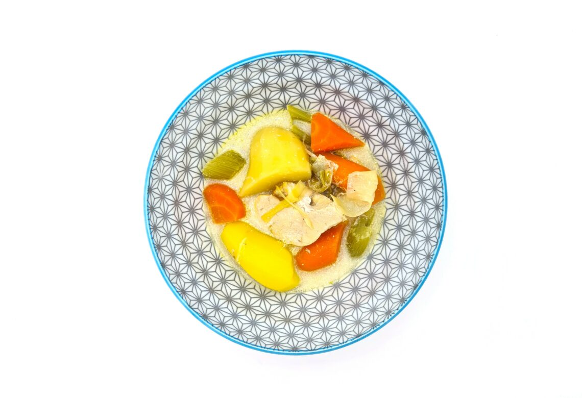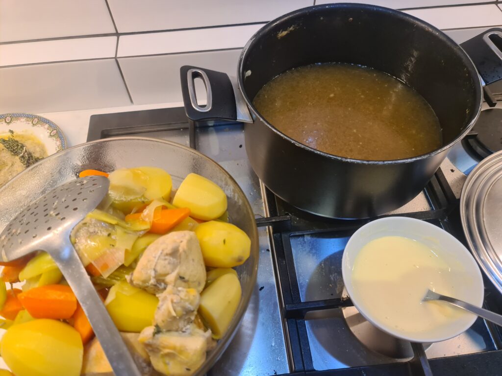 Au bout des 30 minutes, filtrez le tout, gardez le bouillon de côté et remettez le reste dans la marmite